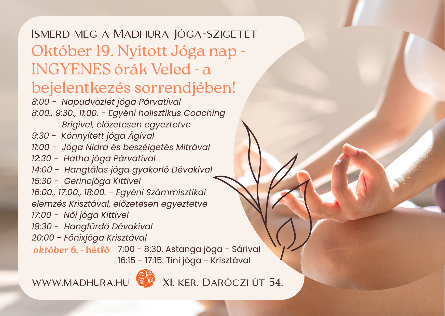 Október 19. Nyitott Jóga nap – INGYENES órák Veled – a
